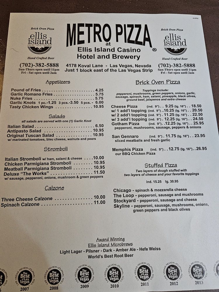 At Metro Pizza on Koval Ln, you'll discover a menu that transforms comfort food into an art form. This Italian eatery, nestled within the vibrant Ellis Island Casino, specializes in a diverse range of pizzas and salads that promise to satisfy every craving.